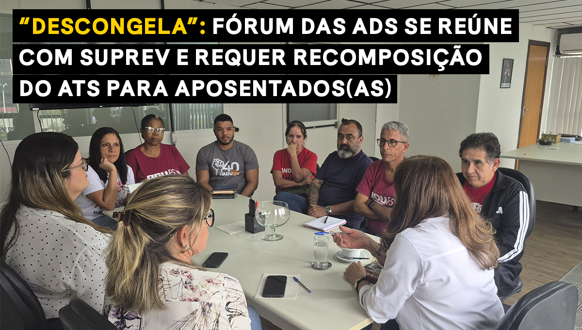 “Descongela”: Fórum das ADs se reúne com SUPREV e requer recomposição do ATS para aposentados(as) 03/03/2026 Ascom Fórum das ADs Reunião tratou do recebimento do Adicional por Tempo de Serviço (ATS) por docentes aposentadas/os no contexto da lei do “Descongel...
