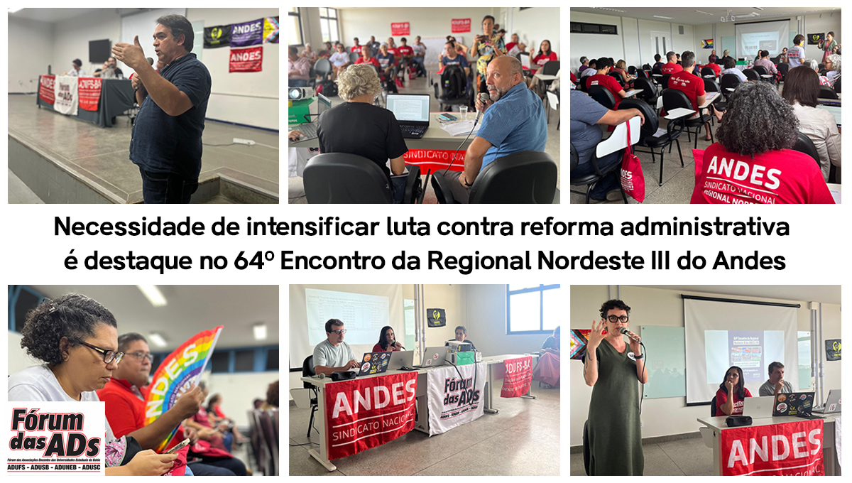 Necessidade de intensificar luta contra reforma administrativa é destaque no 64º Encontro da Regional Nordeste III do Andes 12/12/2025 Ascom Fórum das ADs O debate sobre o conjunto de instrumentos nocivos previstos na reforma administrativa, assim como a organização e mobilizaç&atild...