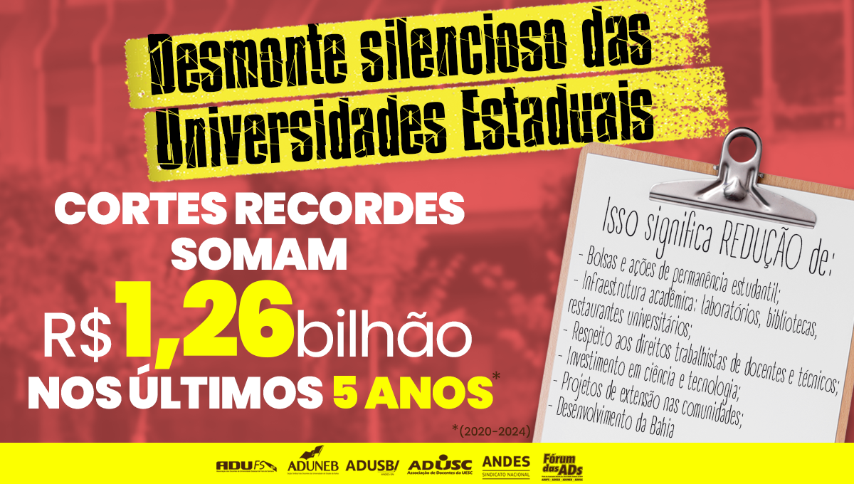 UEBAs sofrem desmonte silencioso com subfinanciamento e cortes recordes; perdas somam 1,26 bi nos últimos cinco anos 12/12/2025 Ascom Fórum das ADs Financiamento das quatro universidades estaduais baianas (UEBAs) vive um ciclo de retração profunda desde 2016. No quinquênio 2020...