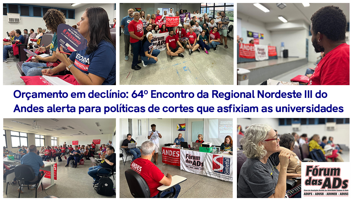 Orçamento em declínio: 64º Encontro da Regional Nordeste III do Andes alerta para políticas de cortes que asfixiam as universidades 12/12/2025 Ascom Fórum das ADs Urgência de enfrentar o subfinanciamento das universidades públicas foi tema de mesa sobre austeridade e orçamento, impacto do cor...