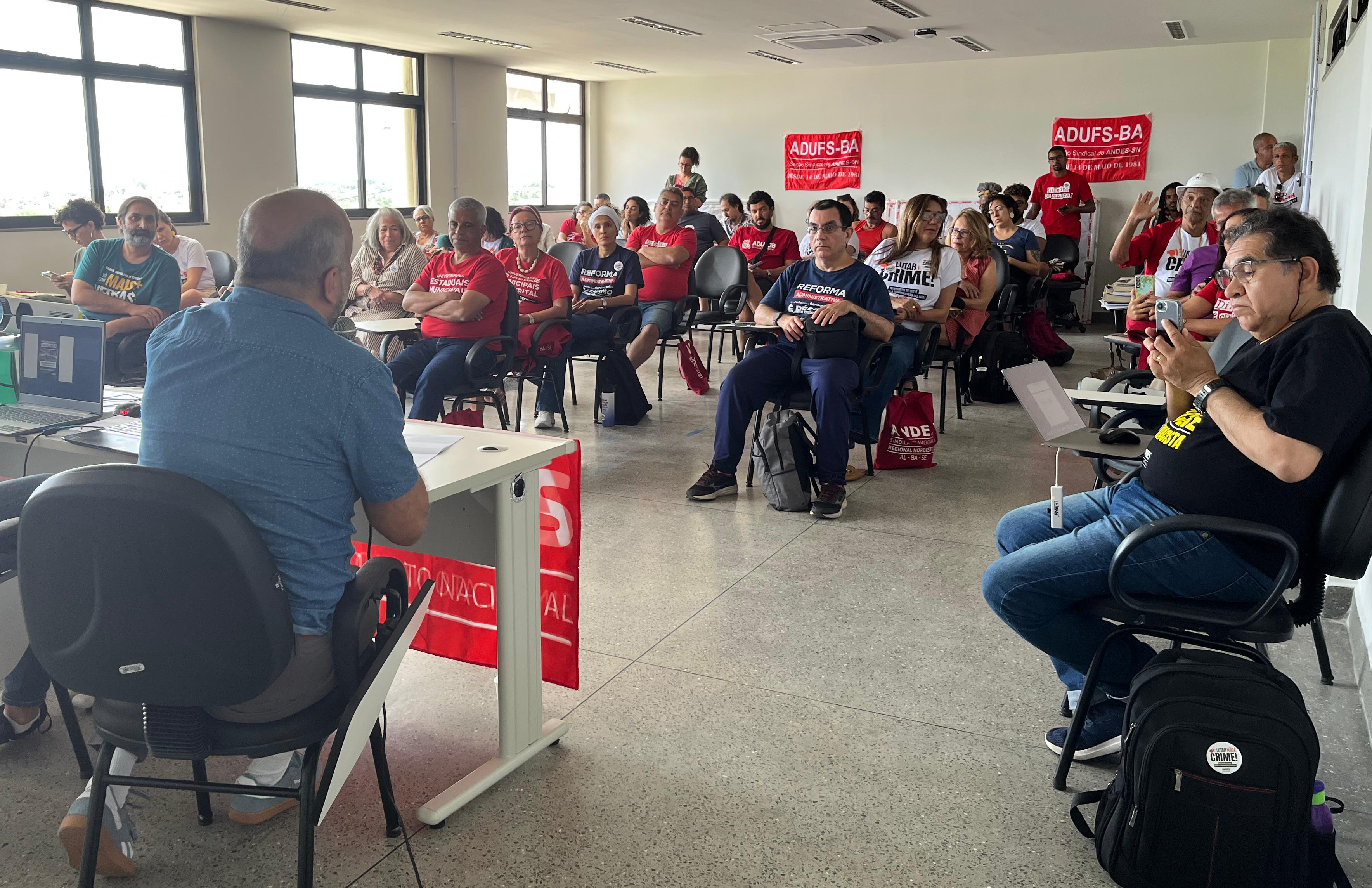 Com organização da Regional Nordeste III do Andes-SN e da Associação de Docentes da Universidade Estadual de Feira de Santana (ADUFS) e apoio do Fórum das ADs (FAD), o 64º Encontro ocorreu nesta sexta e sábado, 31 de outubro e 1 de novembro, em Feira de Santana/BA.