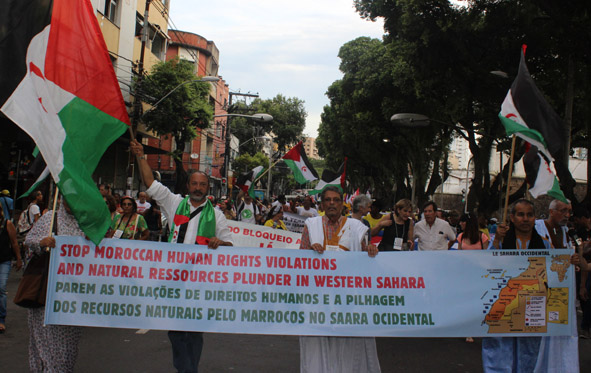 Era aproximadamente 16h30 quando a marcha partiu do Campo Grande em direção à Praça Castro Alves, na capital baiana. Entre as milhares de pessoas era possível identificar faixas de delegações do mundo inteiro, a exemplo de Marrocos, Itália, Venezuela, Coréia do Sul, Filipinas, Tunísia, Cuba, entre outras. Em clima descontraído, além das pautas mundiais coletivas, vários grupos traziam cartazes, camisas, bonecos e outros materiais que reivindicavam as pautas especificas das categorias ou movimentos.