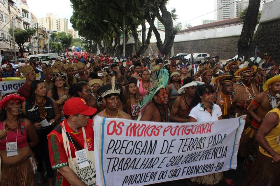 Os verdadeiros donos das terras respeitados e vindos à frente, com o canto, a força e a dança abrindo os caminhos da resistência, trazendo consigo milhares de pessoas de todo o mundo. Assim um grupo de índios Potiguara, do interior da Bahia, abriu a marcha que marcou o início do Fórum Social Mundial (FSM), na tarde desta terça-feira (13), em Salvador. Até o próximo sábado (17), unidos, em mais de 1300 atividades, representantes dos movimentos negro, feminista, LGBTs, sindicais, estudantis, partidos e outras organizações políticas, discutirão a criação e o fortalecimento mundial de alternativas sócio-políticas ao neoliberalismo. O ANDES-SN, a ADUNEB e o Fórum das ADs somam forças à organização e participam ativamente das atividades do FSM.
