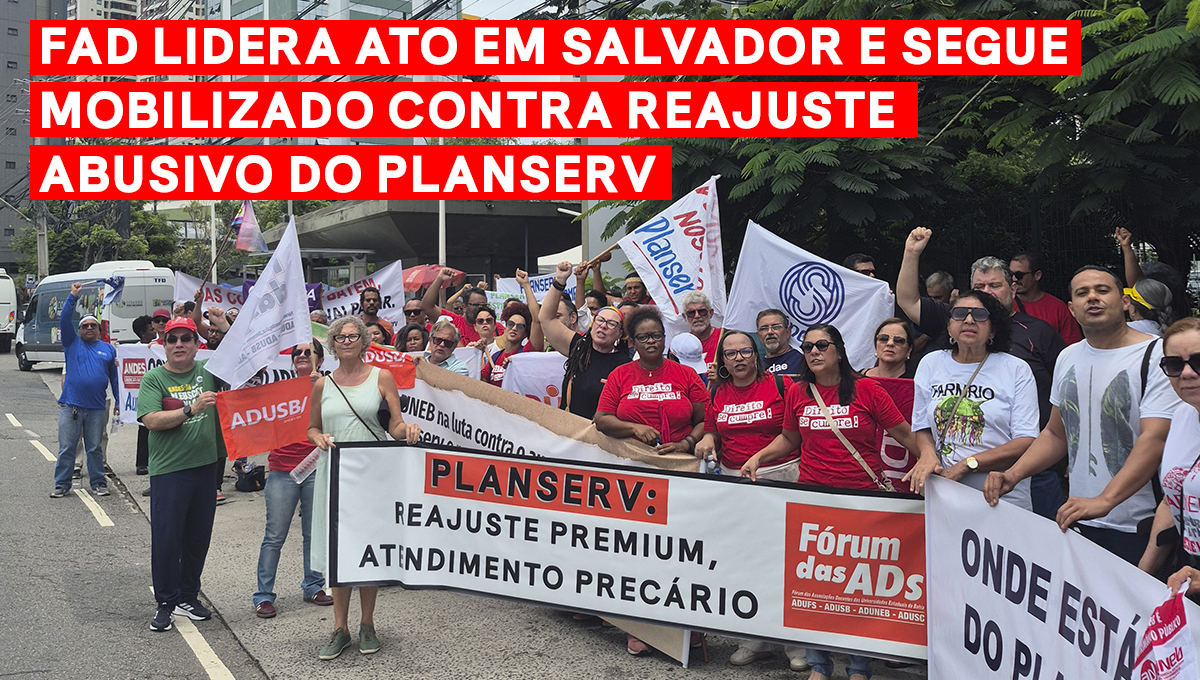 FAD lidera ato em Salvador e segue mobilizado contra reajuste abusivo do Planserv 02/03/2026 Ascom Fórum das ADs O ato reafirmou a exigência de revogação do aumento e a necessidade de melhorias concretas na cobertura e na qualidade do atendime...